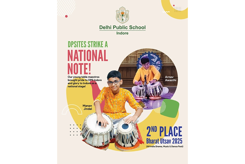 Indore’s young tabla prodigies, Manan Jindal and Arnav Awasthi, of DPS Indore, brought national acclaim to the city by securing second place in the prestigious Bharat Utsav 2025 – All India Drama, Music & Dance Fest-Contest, organized by the Akhil Lok Kala Cultural Organization. The grand event was held in Pune, Maharashtra, from May 16 to May 22, 2025, showcasing India’s finest young talent across performing arts.