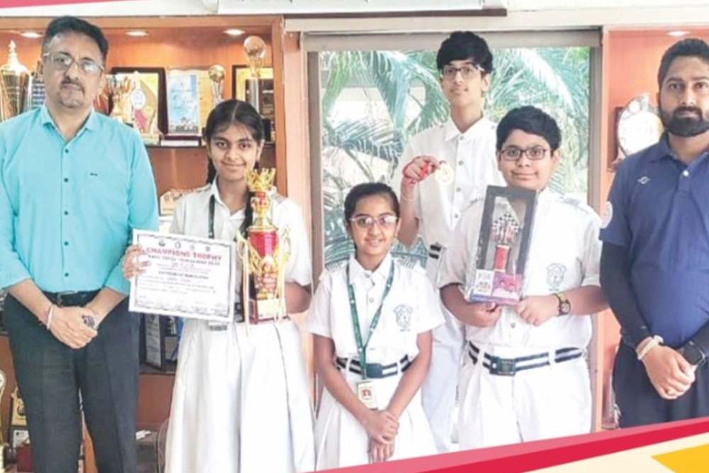 Delhi Public School, Indore celebrates a glorious victory as its young prodigies triumphed at the Champions Trophy Chess Tournament held on 15th June, 2025 at Nehru Stadium, Indore. Inshira Qureshi (Class 9) emerged as the tournament champion, clinching a dazzling trophy and a cash prize of ₹5000. Shubhay Mishra (Class 9) secured 4th position and received ₹1000, while Aarna Maheshwari (Class 6) secured the 10th rank with a prize of ₹500. Adding to the school’s pride, Heramb Khadkodkar of (Class 8) conquered the chess tournament held in Pune, winning a splendid trophy and ₹3000.